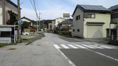 遠くに見える自動車販売店の看板に見覚えがある。こども園の脇を抜け、林の中の細い道を通って丘をひとつ越える。ここでデイケアのバスとすれ違い、立ち止まってバスを通す。バスの中は大勢のお年寄りで、珍しそうに私の方を見ていた。お遍路は見慣れているような気もするのだが、どうなのだろう。