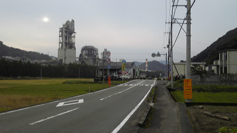 後からGPSのデータをみると、このあたりは時速5~5.5kmと、私にしてはすごいハイペースで歩いているのである。それでも、住友大阪セメントの正門の前を4時40分、あと1kmを10分しかないのではとても無理だ。これも後からみてみると、へんろ休憩所から住友大阪セメントまで2kmではなくて2.6kmくらいあるのだ。