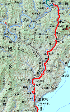 そもそも真念「道指南」による久礼から床鍋までのルートは「そえみみず坂」である。久礼から少し戻り、北を流れている長沢川を遡る。ただ、現在ではあまり使われないルートで、道がやや荒れているとの情報もある。大坂遍路道は一本南を流れる大坂川を遡るルートで、山の中を歩く距離が最短で済む。ただし、森林組合の作業をしているため通行できないという情報もあった。