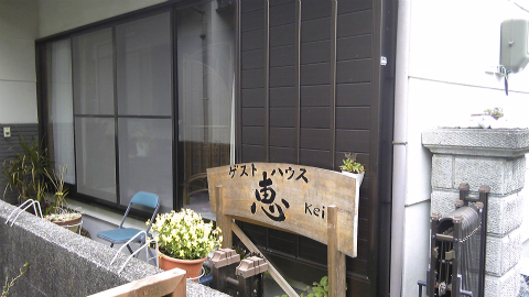 役場の前の道を折れ、病院の前を進むと「ゲストハウス恵」。素泊まり3000円。この窓の奥の和室に泊まらせていただいた。