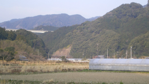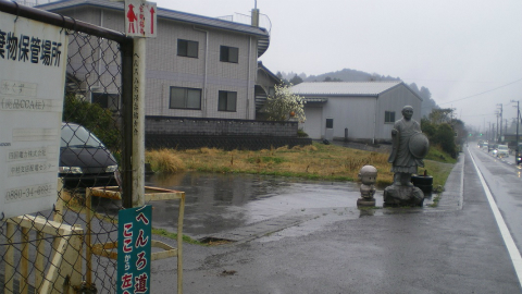 何ヵ所かで道幅を広げたり舗装を直したりしていて、そのため脇道が通れなくなっていたのかもしれない。とはいえ、遍路地図でみるほどにはカーブで距離を損しているという気もしなかったので、県道を道なりに歩いても特に問題はない。
