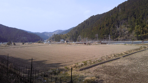平坦な道はゆるやかなカーブを描きながら続く。山並みは意外と近くまできているが、川に沿っているので大きな起伏はない。大きな荷物を持つ身には、ありがたいことである。国道の表示板に「気温16℃」と出ている。前回(2016年秋の牟岐~須崎)とは打って変わって涼しい気候で、これもありがたい。