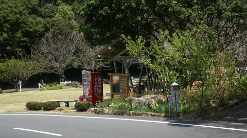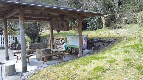 七子峠から1時間、影野にある雪椿休憩所。東屋・ベンチのみ。