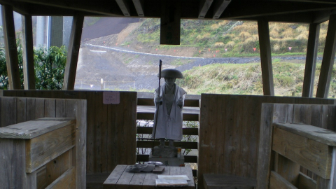 このあたり、遍路地図をみると大きなカーブをショートカットする道があるように書かれているのだが、その道を見つけることはできなかった。その代わりに、たいへん多かったのは道路工事である。