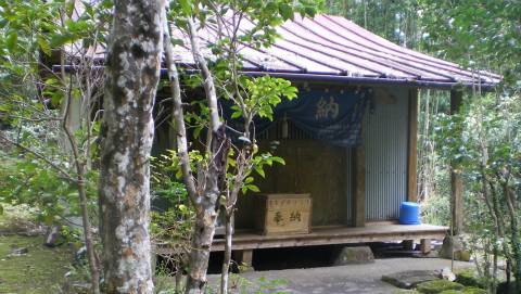 峠道の奥まったところに遍路休憩所。小屋の奥にトイレもある。