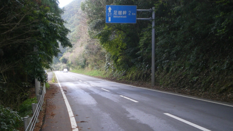 高速の入口を過ぎたあたりから道は徐々に登り坂になり、次にトンネルが出てくる。毎度おなじみ、四国の峠道である。1つ目は角谷トンネル、次が久保宇津トンネル。向こう側が見えるくらいの200~300mのトンネルだが、歩道がないので緊張する。「歩行者に注意」「学童は左側通行」と大きな看板があるところをみると、通学路にもなっているらしい。