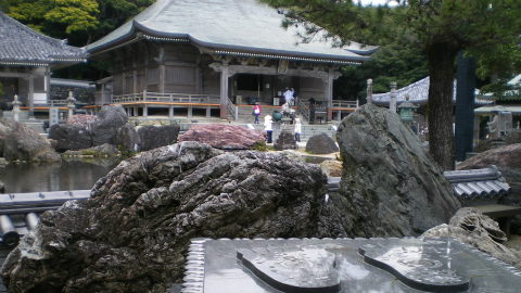 石段を下り、山門レベルにあるトイレと休憩ベンチで身支度を整えた後、角を曲った会館にご朱印をいただきに行く。会館は(あまり大々的に宣伝していないが)宿坊も兼ねているようで、鉄筋の立派な建物である。ちょうどお昼になったので心配だったが(ある札所でお昼休みに納経・御朱印をやめ、それがもとで八十八ヵ所霊場会を抜けたのは、この年の話である)、ちゃんとご朱印をいただくことができた。