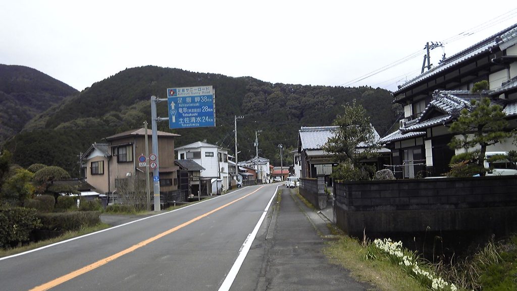 津呂の家並みを過ぎると、足摺岬までは一本道である。真念「道指南」によると、足摺までの最後の集落はつろ村(津呂)の次に大谷村があるのだが、現在ではひとつながりになっていて区別がつけにくい。郵便局の先からが大谷村だったようである。