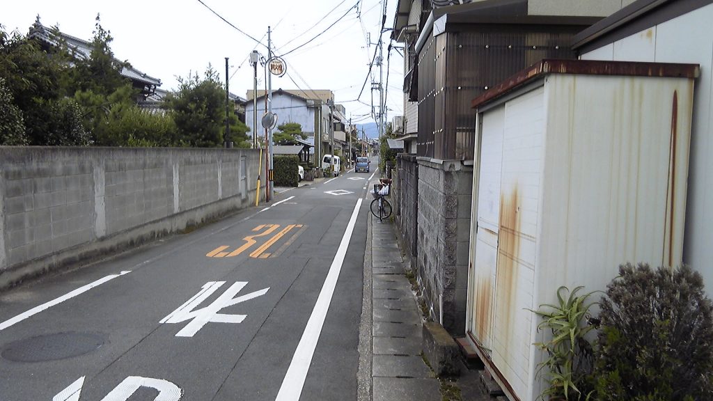 信号を左折し、交通量の多い大通りを進む。倉庫やガソリンスタンド、警察もある。いくつめかの信号のところに歩道橋があり、一宮寺へはここを右折せよと書いてある。時刻はもう4時半を過ぎたが、あと500mくらいのはずで、何とか間に合いそうだ。