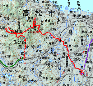 [行 程]白峯寺 9:50 →(3.3km)11:10 十九丁 11:15 →(0.7km)11:40 県道横休憩所 11:55 →(1.4km)12:25 根香寺 12:55 →