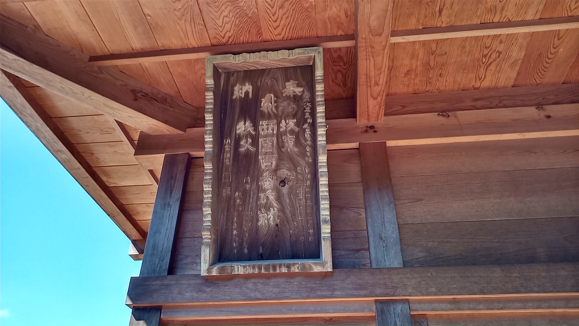 お堂に掲げられている西国巡礼結願記念の奉納額。お堂と比べてかなり古く見えるし、巡礼は明治に始まって大正時代に結願したと書かれている。