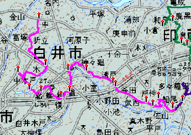 だから、白井の湯3時27分発の白井市コミュニティバスで市役所に戻ることになる。幸い、想定される経路はコミュニティバスのルートからそれほど離れていない。