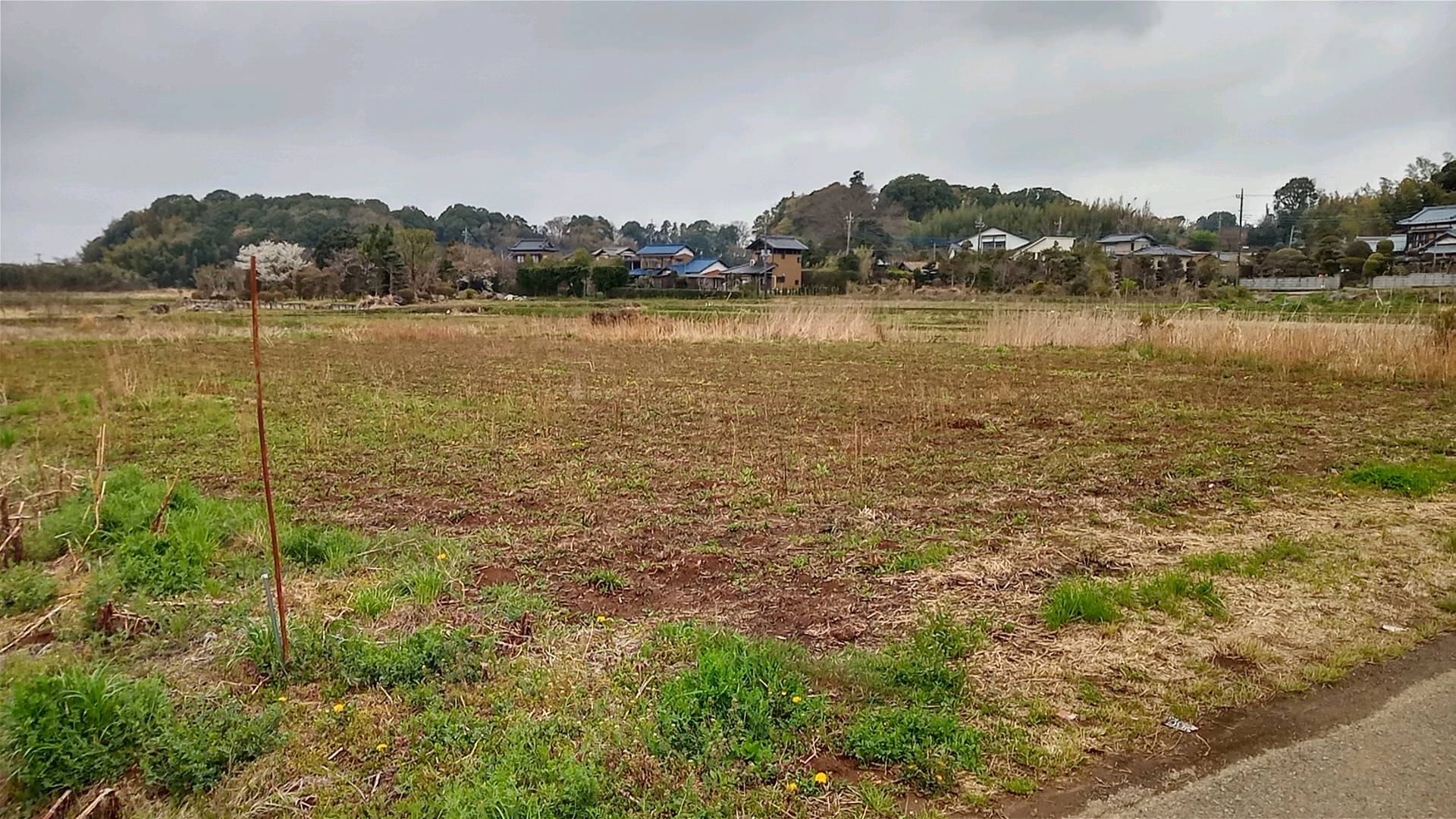 前面は開けて田畑もある。そして、はるか先に国道16号線が見える。おそらく、昭和30年代以降この風景は変わらないのだろう。16号線にはロードサイドの店も多いのだが、このあたりには背の高い建物は建たないようである。