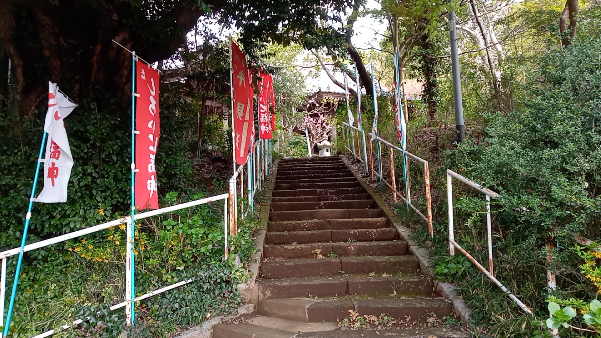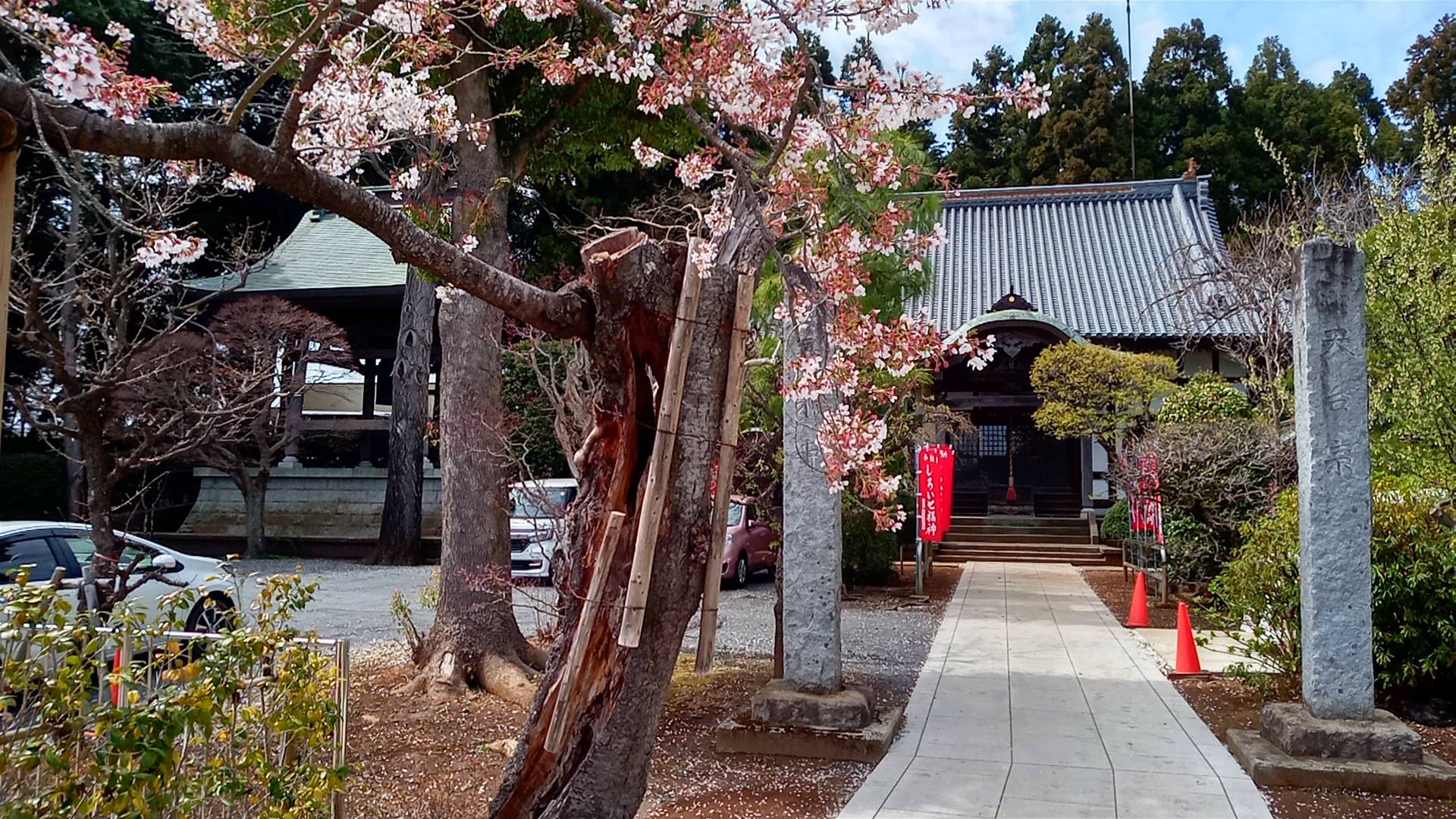 ところが、道路沿いの低くなった場所に、鉄骨で補強された古びた建物がそうだったのである。あれがそうだったのかと驚いた。歩いて行ってみると、街道から入る細い道の奥に、広い境内があった。