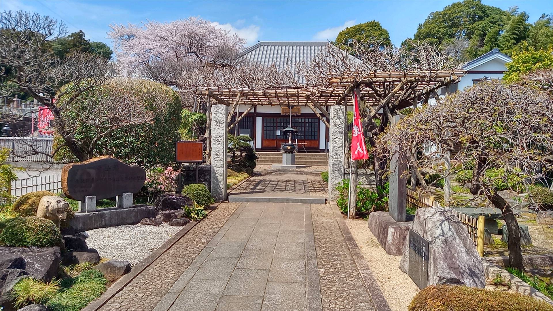 四国四十二番は仏木寺なので、名前の似ているので四十二番としたのだろう。黒く塗った札所は本堂の左、寿老人の石像の後ろにある。こちらも桜が見事だ。