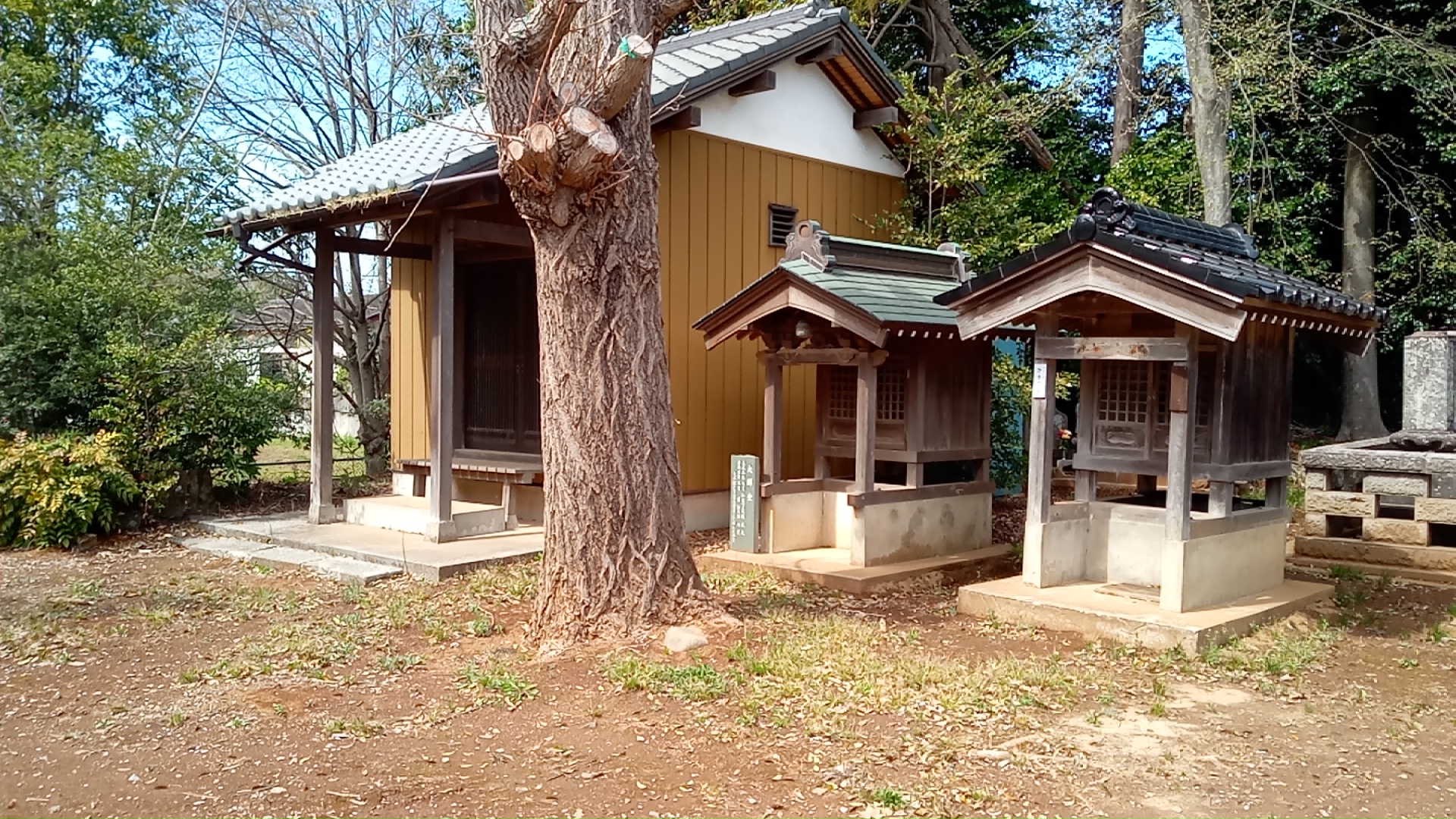 ただ、ここはすでに寺としては使われていないようで、本堂は補強がなければ倒れてしまうのではないかと思うくらい傾いている。境内にいくつか残っているお堂は崩れそうだし、乳の出がよくなると信仰されたイチョウも枯れているのではないかと思うほどだった。