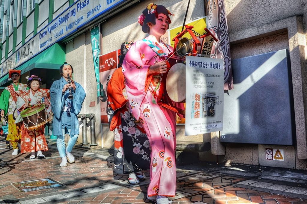 チンドン屋の語源にはいくつかの説があるが、鉦(チン)や太鼓(ドン)で人目を引いて、何かの広告宣伝をする人達と単純に考えていいのではないだろうか。