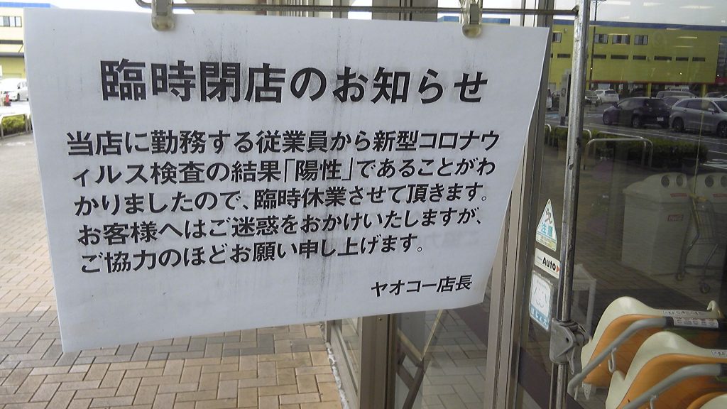 週明けのご近所に激震が走った。印西牧の原地区で一番のスーパーである「ヤオコー」が、従業員が検査陽性とのことで臨時休業してしまったのである。