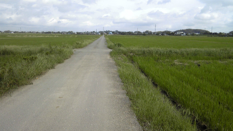 印旛沼に近づくと、どこまでも真っ平らな直線道路が続く。