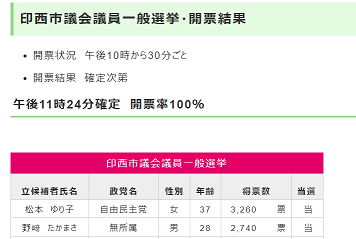 前回は現職市長とNHK党の2人しか立候補しなかった印西市長選。今回は6人が立候補、あるいは誰も法定得票数に足らず再選挙という事態すら懸念されたが、投票箱の蓋を開けてみたら新人・藤代候補の圧勝という結果となった。