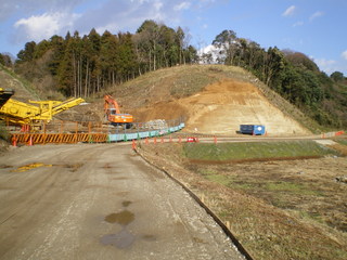 前回、前々回の写真を見ていただくとお分かりのとおり、前後に工事区間を望む高台から写真を撮っている。ここを通過するのは上に橋をかけるのか、それともトンネルを掘るのかのどちらかだろうと思っていたら、そのどちらでもなかった。高台そのものを削って平らにしてしまったのである。