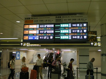 さて、成田空港から都心(といっても日暮里・上野)まで40分以内というのが売りのスカイアクセスだが、第二ビルからわずか3駅目にあたるわが最寄り駅からも30分以上かかってしまう上、スカイライナーより本数が少ないアクセス特急という便の悪さはつらいところ。とはいえ、まず乗ってみなければということで海外に行く訳でもないのに行ってみたのでありました。