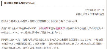 佐藤天彦マスク外して反則負けの波紋
