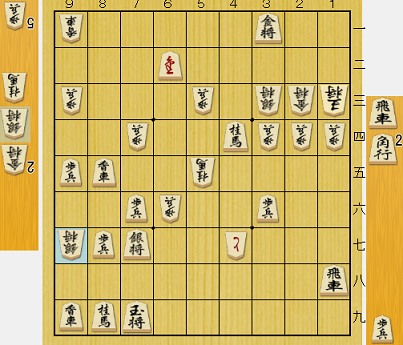 問題の局面が下図。▲8二角と両取りをかけ、両方受ける手はないから、飛車がどこかに逃げて6四角成で銀を取った手が桂に当たる。先手が優勢を拡大できるかに思われた。
