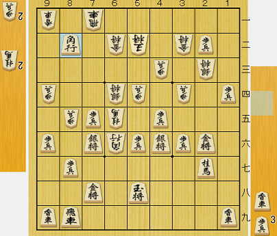 振り駒の結果、豊島九段の先手。大橋六段は準決勝に続いて角道を止め、雁木かと思いきや居玉のまま力戦に持ち込んだ。下図の局面では豊島九段の角は助からず、角金交換か角銀交換で大橋六段の駒得が確定している。