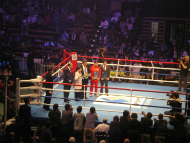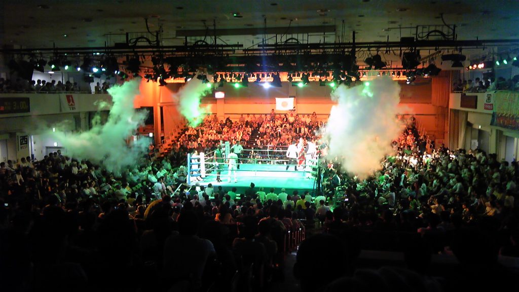 土曜日は予定が盛りだくさんで、後楽園ホールに着いた午後8時過ぎはまさに両選手入場の場面だった。