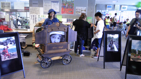 まずはじめに、手回しオルガンで曲を流しながら、紙芝居。さすがにご自身も大道芸人だけあって(キノさんは函館市の観光大使である)トークは手慣れたものである。曲と曲の合間に、手回しオルガンの説明や、ギリヤーク師匠のことなどの説明がある。