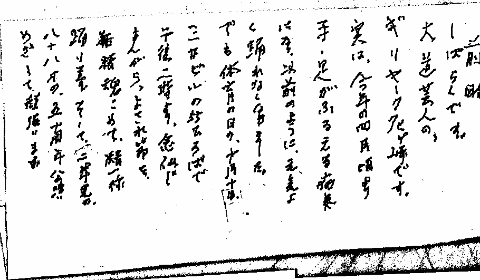どうやら、いつもとはかなり様子の違う公演になりそうだ。置いてあったパンフレットを読んでみると、ギリヤーク師直筆(とはいってもスマホもパソコンも持ってないだろうけど)の公演あいさつ文が載っていた。