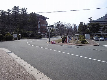 ほどなく、小用港着。おそらく入港に合わせてバスがいるはずと見当を付けていたら、やっぱり止まっていた。旧海軍兵学校、現在の海上自衛隊・術科学校は、小用から山一つ越えたところにある。そしてバスが「術科学校前」に着いたのは10分前くらい。バス停前にそれらしい建物がないのでちょっとあせったが、そのまま進行方向に坂を下りると大きな建物が見えた。