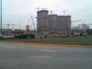 グランドリスボアは5階くらいまでは出来ていて、どでかいネオンサインも光っている。ただ高層階はまだまだという感じだし、内装やリスボア本館との連絡通路も工事中である。だからグランドオープンはまだまだ先になるだろうが、もしかしたら突貫工事で旧正月に間に合わせて、低層階のカシノフロアだけでもオープンするのかもしれない。ウィンの海側にはMGMがいよいよ骨格を現してきたが、こちらは低層部分ができておらず、今年1年かかりそうだ。