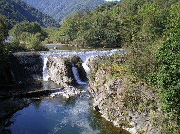 帯広から1時間ほど走ると、札内川園地へ到着する。ここには中札内村が運営するキャンプ場やレストハウス、登山情報館があって、きれいに整備されている。園地入口から展望できるぴょうたん(ひょうたん?)の滝は、実は自然の滝ではなく、もともとダムのはずだったのが台風の土石流で埋まってしまった跡なのである。