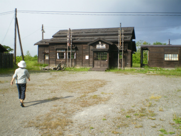 留萌本線・恵比島(えびじま)駅のはずですが、平成11年NHK朝のドラマ「すずらん」のロケ地となったため、ドラマに合わせて「明日萌(あしもい)」駅になってしまいました。右の小さな建物が、おそらく本物の恵比島駅。