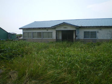 稚咲内(わかさかない)に残っていた民宿浜サロベツの跡。玄関側はしっかりしているようですが、海岸に向かう裏側はかなり壊れてしまいました。左側の窓のある部屋に泊まったのです。