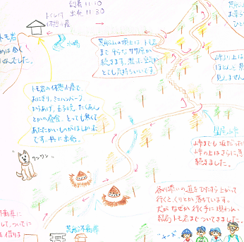 荒船山に登ったときのスケッチ。犬の絵があるのと、「トモ岩はとっても寒くて」と書いてあります。