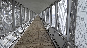 橋上展望室へ向かう遊歩道。風が吹き抜けるため結構寒く、また上が車道なのでかなりうるさい。入場料は500円。