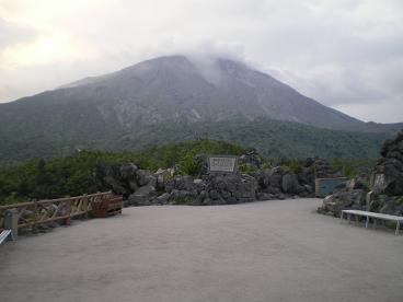 夏のこの時期には、風向きのため噴煙が鹿児島市に向かって飛んでいくことが多いそうで、鹿児島市に入ると、車道にも歩道にも、止まっている車の上にも火山灰が積もっている。風が吹くと、この灰が宙を舞うので、遠くの景色はうす黄色く霞んだように見える。ホテルに着いて荷物を置くと、周囲に灰が落ちたのにもびっくりした。