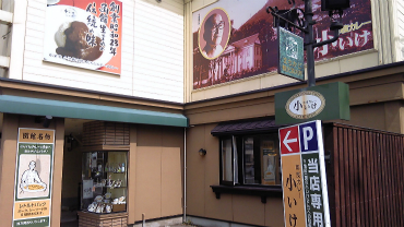 こちら市電通りに面した「本店」。写真の人物が伝統の味・小池氏。本店は息子の、元祖はもと従業員の系統。どちらにもレシピは残していなかったらしい。