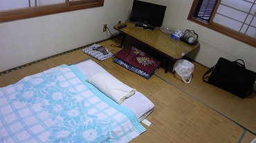 民宿というのは格差が相当に激しく、畳も新しく部屋もきれいで風呂も大きく、ただ規模が小さいだけの旅館並みというところもあれば、北海道によくある「ライダーハウス」というカテゴリーになると本当に屋根がついているだけというところもある。今回はというと、わたし的な民宿水準を50とすれば40というところだろうか。