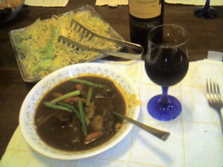 ちょっとピンボケしてしまいましたが、牛スネ肉のシチューとワイン。