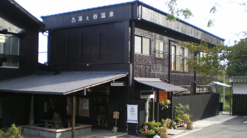 湯之谷温泉。近年新装されてきれいになったそうだ。遍路地図には「湯之谷温泉旅館部」とあるが、「温泉部」はすぐ左の建物である。