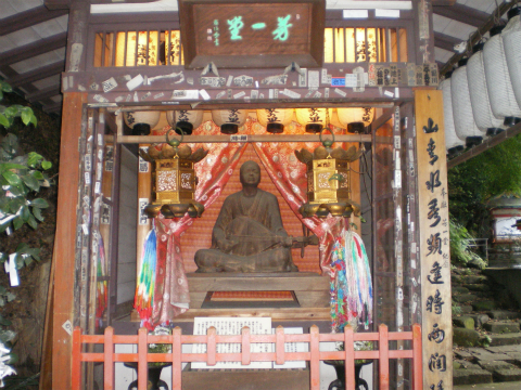 琵琶法師の像というと、高松の平家物語記念館にあった蝋人形がまるで本物さながらであったことを思い出す。感心して2回見に行ったのだが、2回目は展示施設そのものが小さくなってしまって、倉庫の片隅に置かれていたのは悲しかった。こちらの芳一像は木造であり明るい場所にあるのだが、それでも耳をちぎった痕などはリアルである。