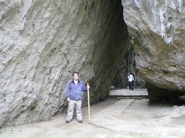 そして、最も奥にある神域がサングーイ(三庫理)、巨大な岩が三角形の窓を作っている。これは、三角形に掘ったり人力で移動した訳ではなく、大自然の偶然の産物であるらしく、とても人が動かせるような大きさではない。上の方をみるともろくなっている岩が落ちてきそうな箇所もあり、やはり長居は遠慮したくなる場所である。
