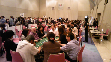 2014AJPCメイン開始。参加者は366名、スタート時点のテーブルは23。いずれにせよ国内最大のトーナメントです。