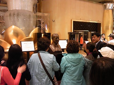 グランドリスボアのエントランスに鎮座まします、カシノ王スタンレー・ホーの胸像。観光名所化していて、ここは写真撮影可でした。