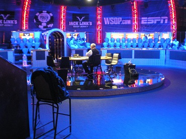 3ラウンド開始頃に、最近の優勝者の表彰式で放送され、優勝者の国歌(カナダとアメリカ)が流される。日本人のブレスレットホルダーが出ると、君が代である(motoさんがんばってください)。また、WSOPシニアの最高齢参加者87歳のインタビューも流される。さすが世界的イベントである。