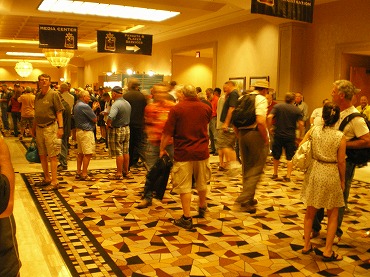 WSOPシニア開始前。廊下にたむろする老人の群れ。